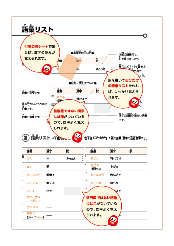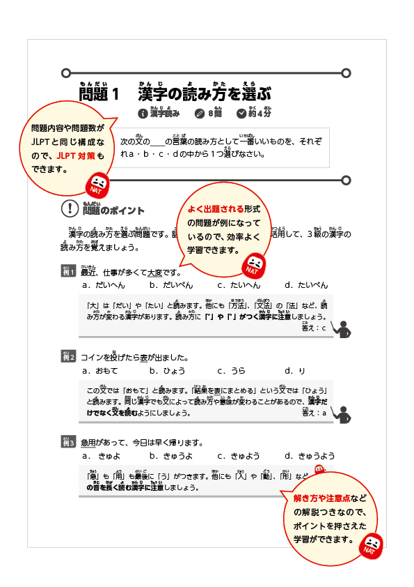 | 日本語NAT-TEST3級公式問題集 ~日本語能力試験N3対策問題集~ | B5、176ページ、CD/赤シート付き | 978-488324-491-1 | 2,400円 | amazon.co.jpでご購入 |