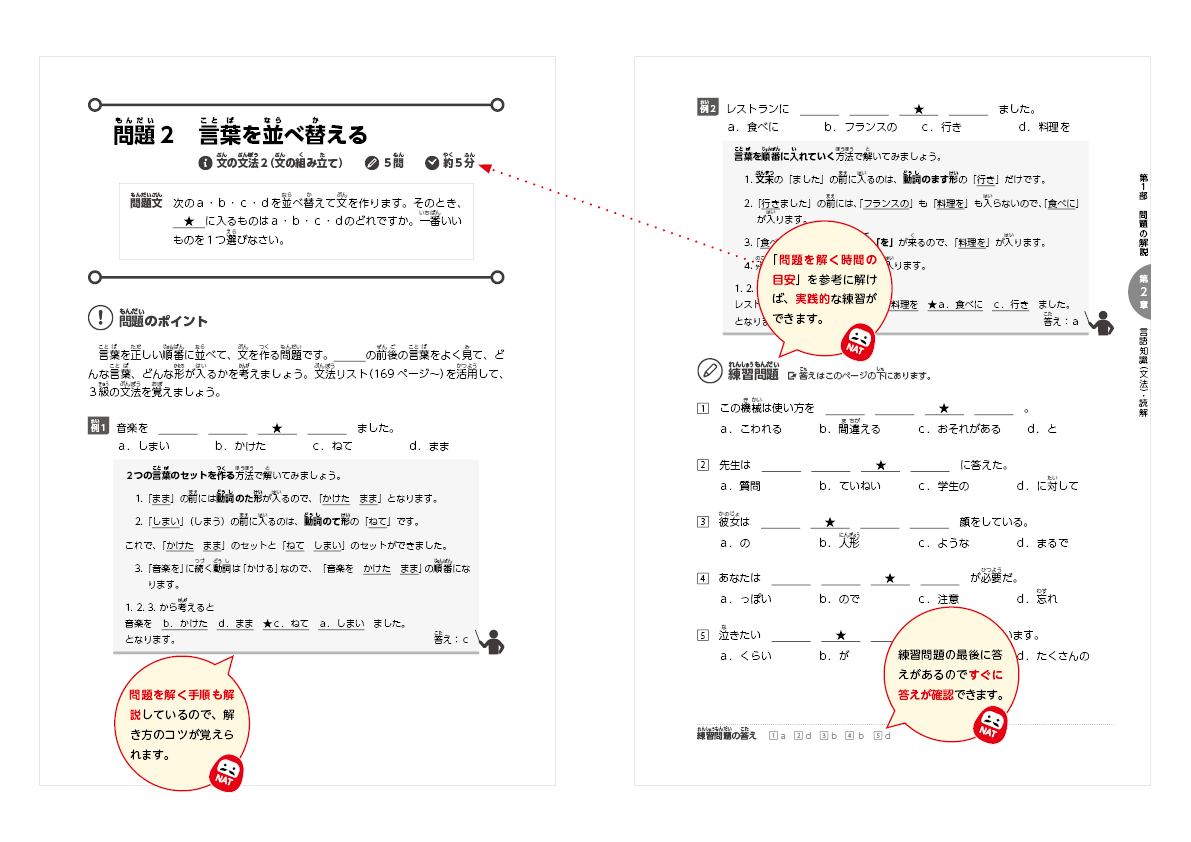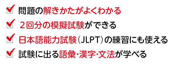 | 日本語NAT-TEST2級公式問題集 ~日本語能力試験N2対策問題集~ | B5、192ページ、CD/赤シート付き | 978-488324-492-8 | 2,500円 | amazon.co.jpでご購入 |
